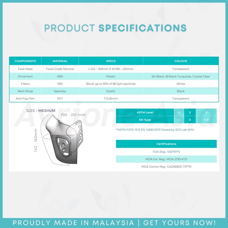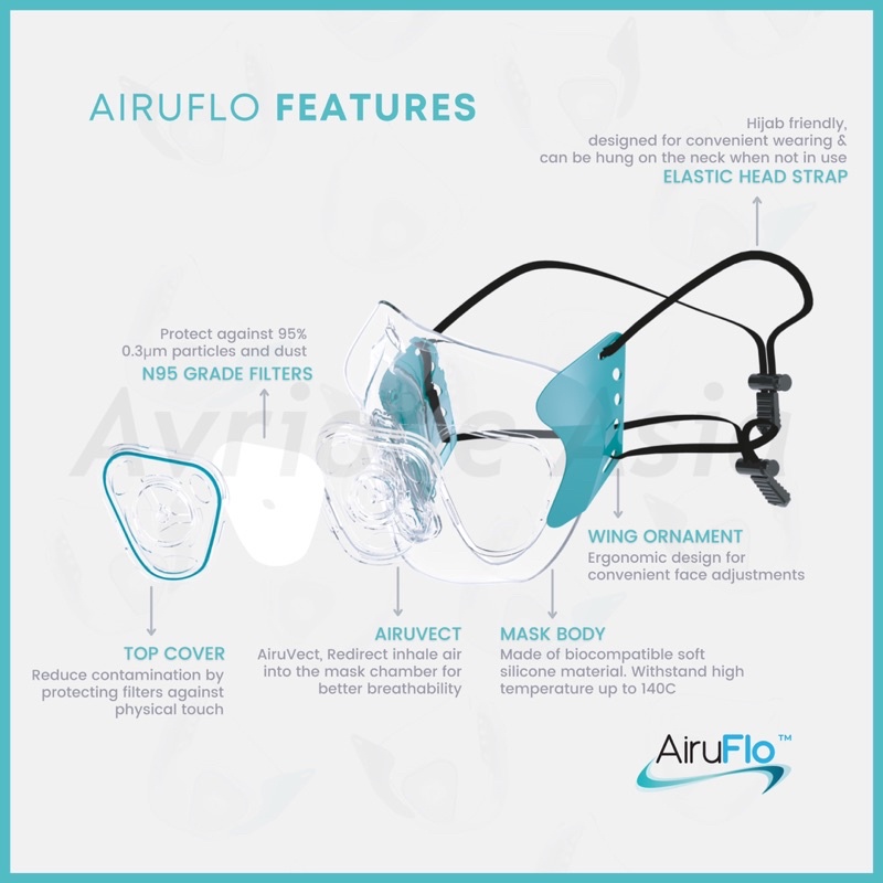 Airuflo N95 Transparent & Reusable Face Mask (with replaceable N95 filters)