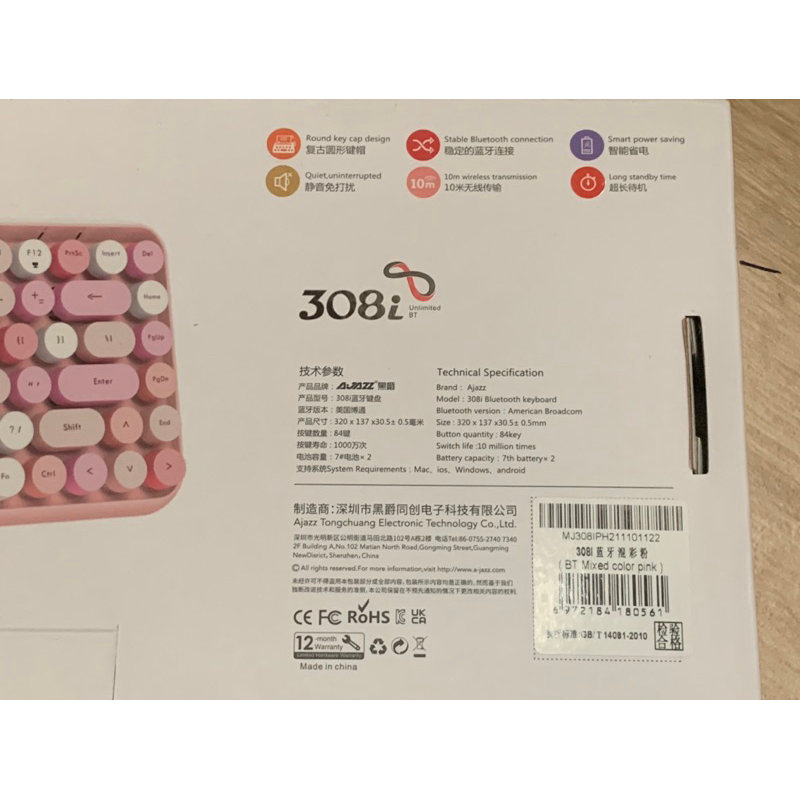 Ajazz 308i Pink Bluetooth Keyboard