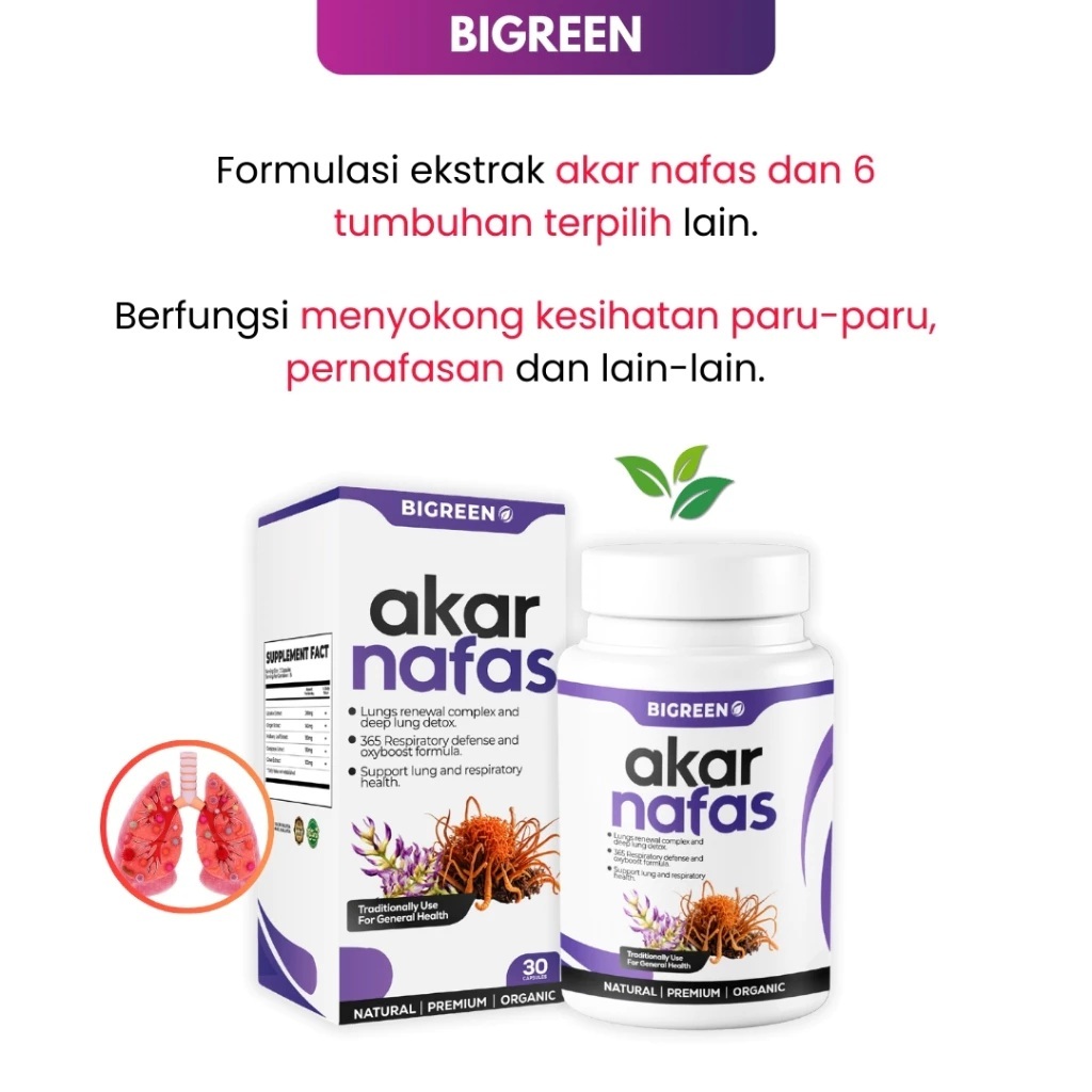 Akar Nafas - Sesak Nafas, Batuk Berkahak, Penyakit Asma, Menyokong Kesihatan Paru-Paru - 30 Kapsul