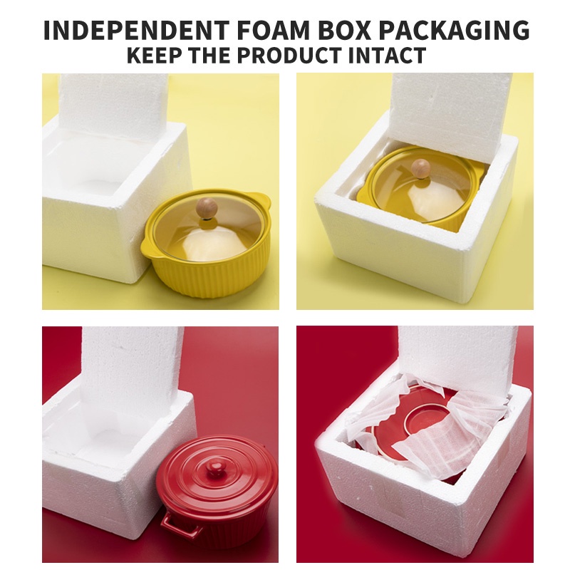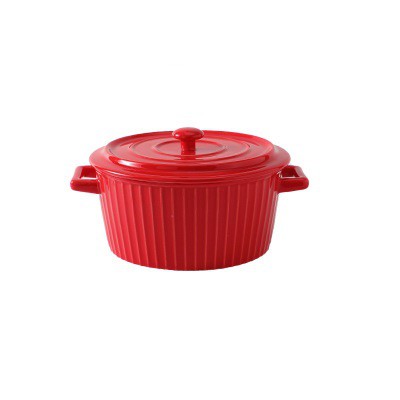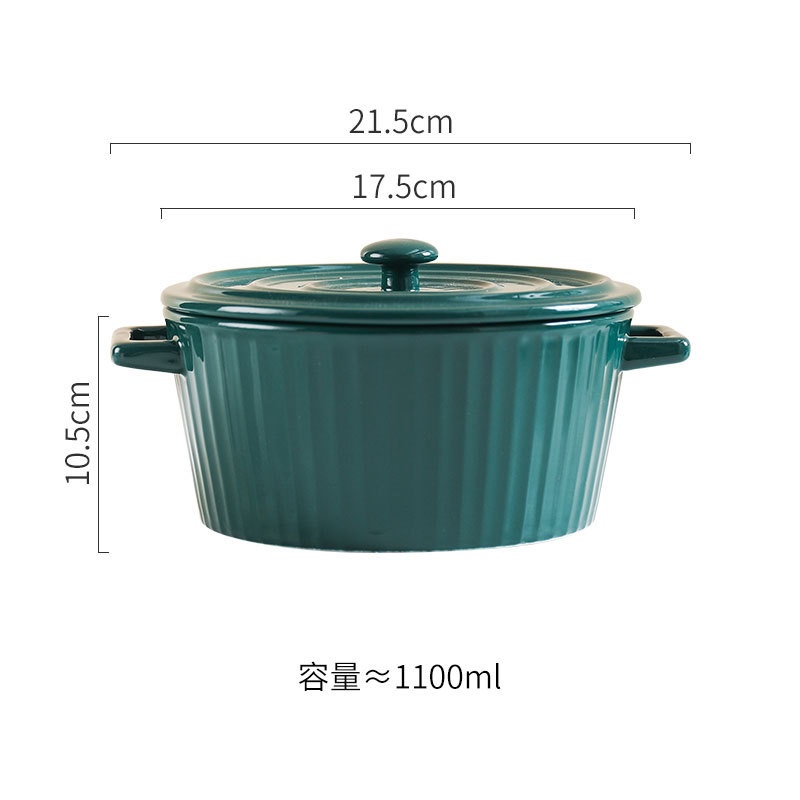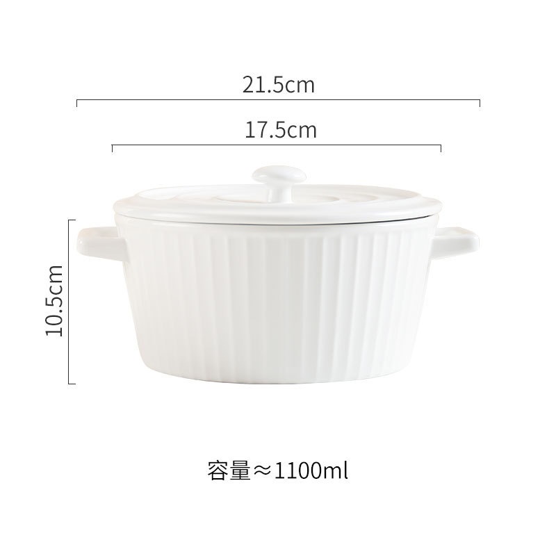 Akara Nordic Ceramic Double Ear Bowl with Lid Salad Bowl Noodle Bowl Mangkuk Seramik Bowl Casserole Pot