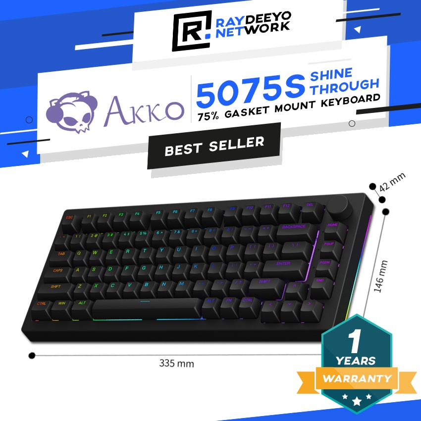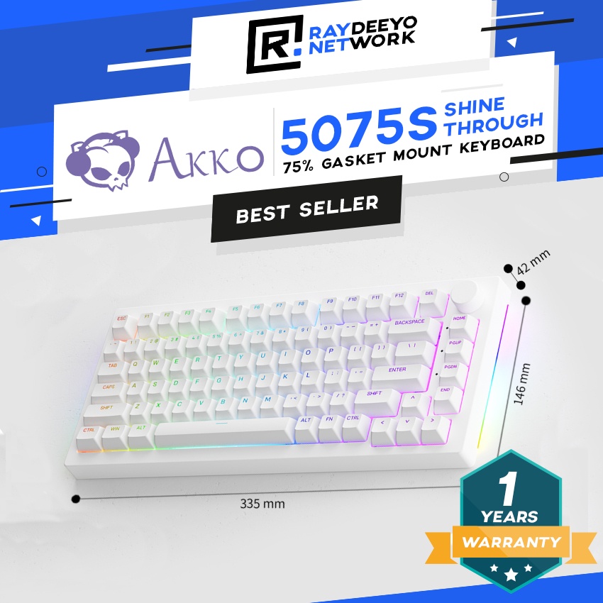 Akko 5075S Shine-Through RGB Gasket Mount Mechanical Keyboard with Knob [Akko TPU Double Shot Plate Mount Stabilizer]