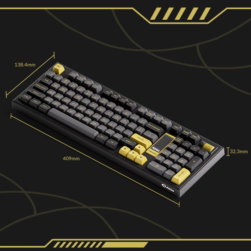 Akko Black & Gold 5098B Wireless Mechanical Keyboard, First with LCD Screen, Gasket Mounted, PBT Dye-Sub Keycaps