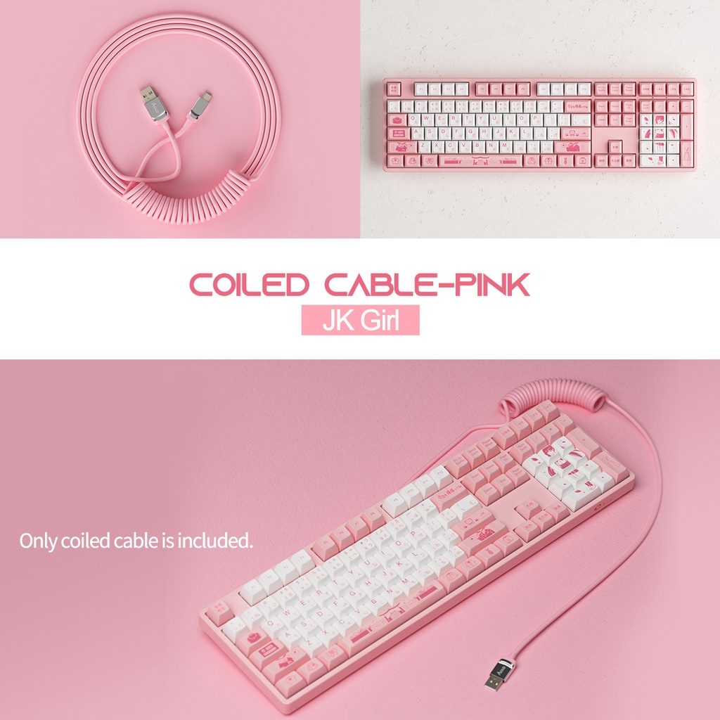 Akko Keyboard Cable with Durable Coil, High-strength and Elasticity, Customized USB-C to USB-A Lightweight Wired Coiled Cord for Mechanical Keyboard (Black / Blue / White / Pink)