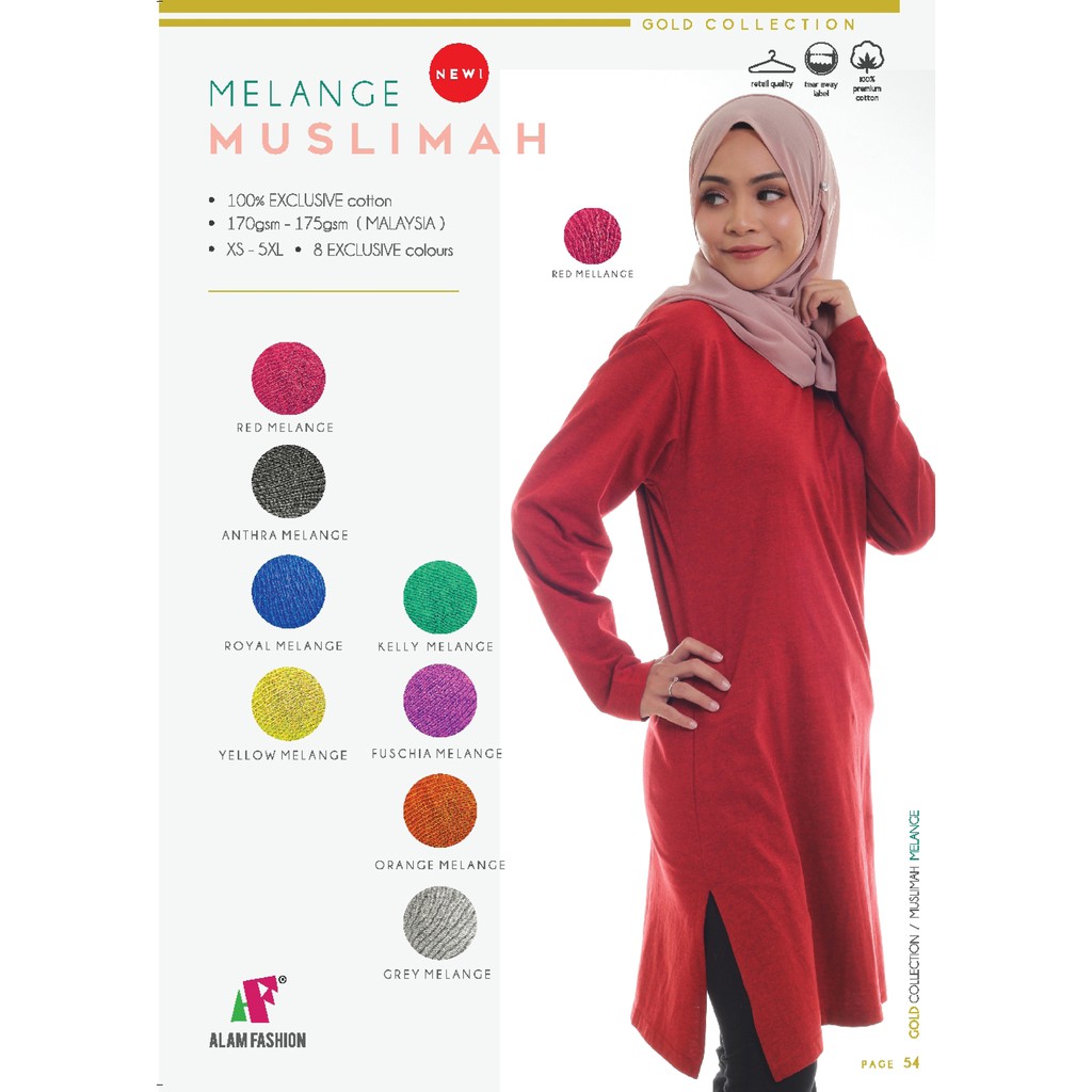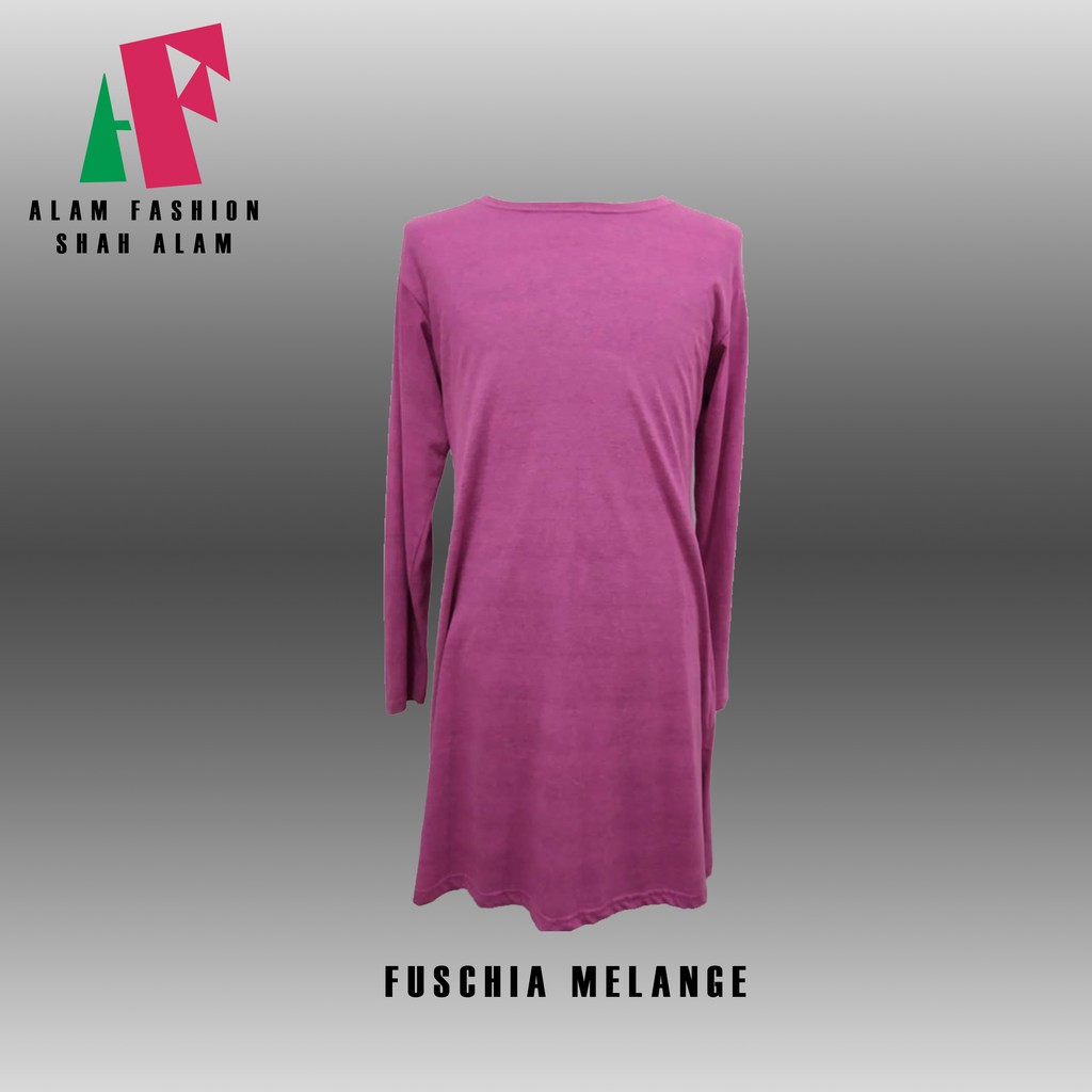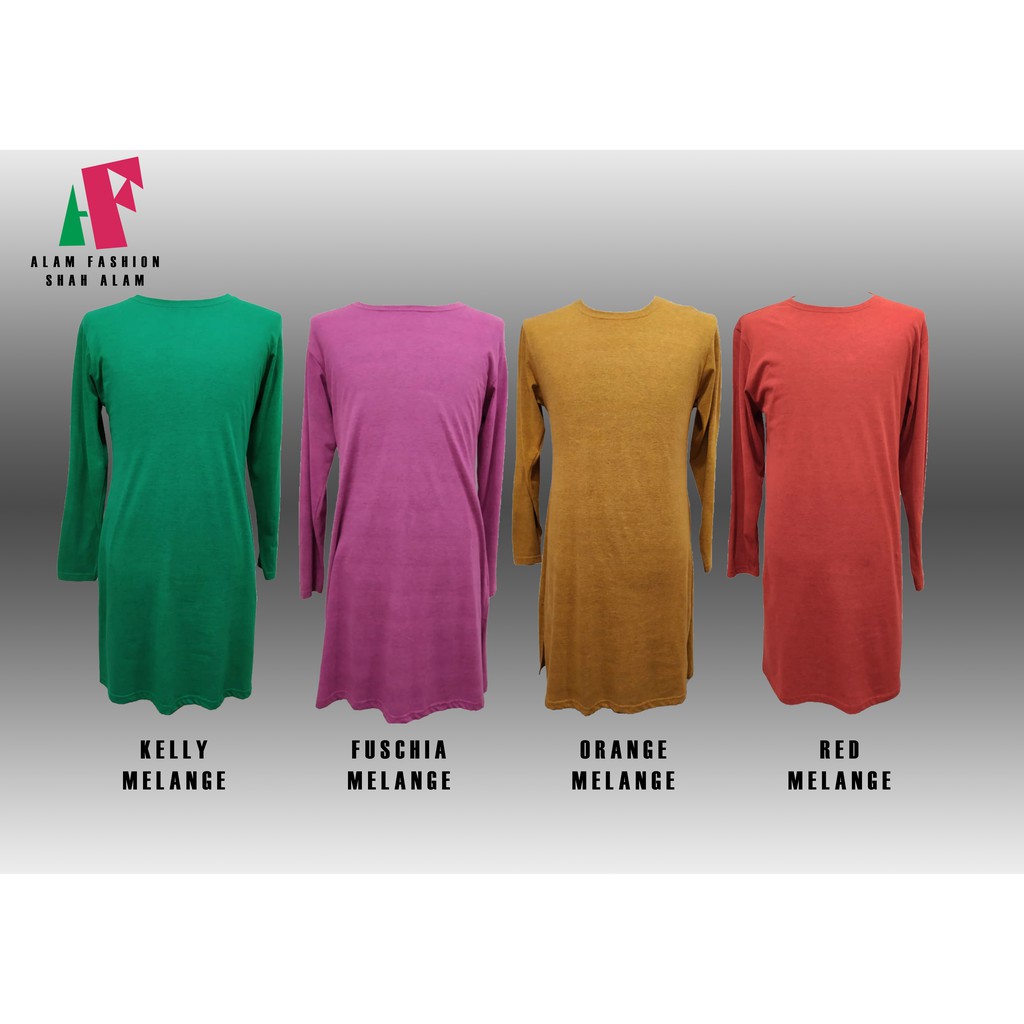 Alam Fashion T-shirt Cotton Round Neck Muslimah Melange (Kelly, Fuchsia, Orange, Red Melange)