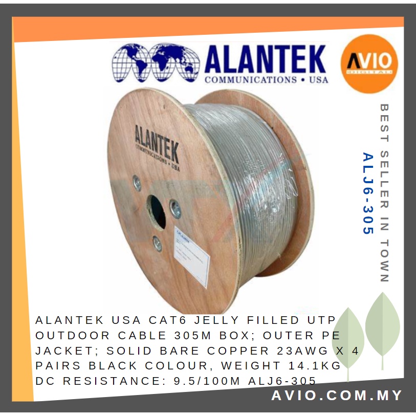 Alantek USA Cat6 Outdoor Jelly Filled UTP Network Cable 305 Meter Solid Bare Copper 23AWG ALJ6-305
