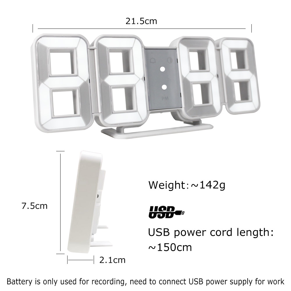 Alarm Clock 3D LED Modern Digital Wall Clock Table Desktop Nightlight