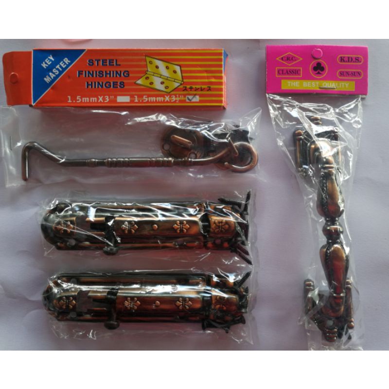 Alat-alat Tingkap / Window tools Set (Window Hook, Handle, Lock Latch Bolt (Rose Red Color) & Hinges)