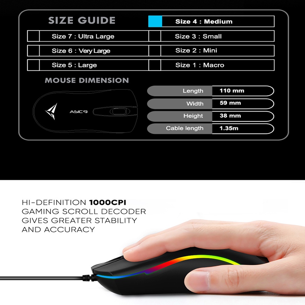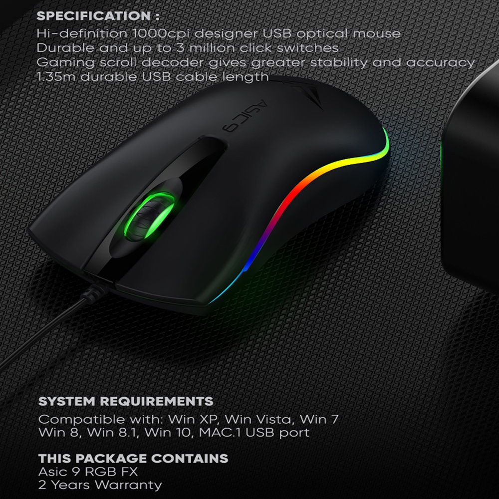 Alcatroz Asic 9 RGB Hi-Definition USB Wired Mouse | Free MouseMat
