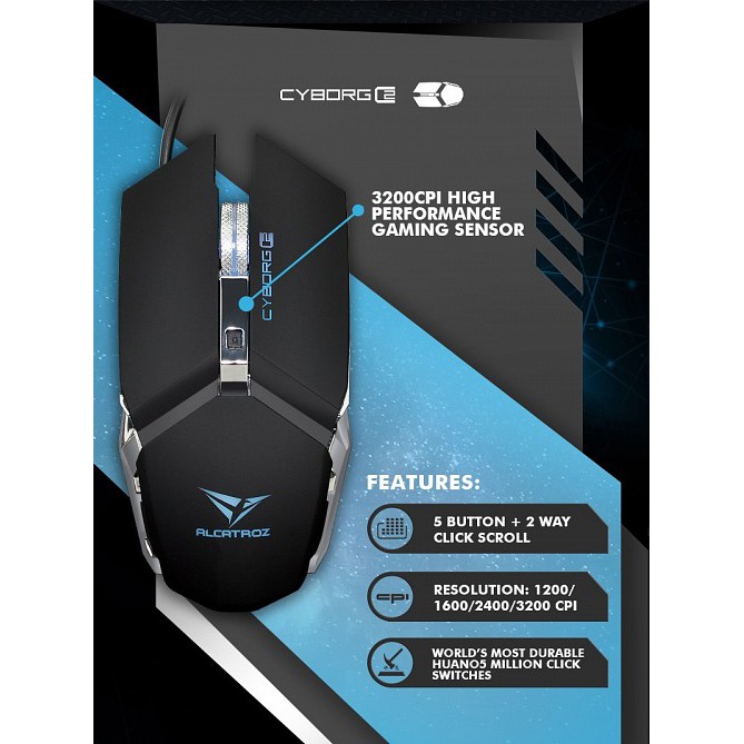Alcatroz Cyborg C2 5 Butoon Gaming Mouse 7 Colours Light Effects 3200 CPI Free Mouse Pad