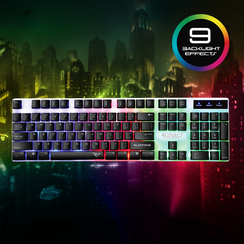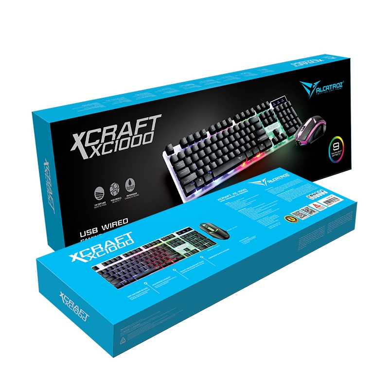 Alcatroz X-Craft XC1000 Spill Proof Gaming Keyboard Mouse Combo Set with 7 Colour Light Effect