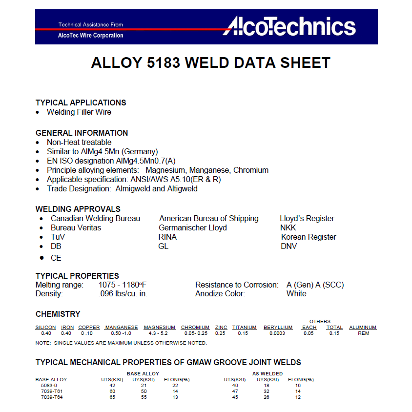 AlcoTec R5183 Aluminum TIG Welding Rod 3.2mm (4.54kg)