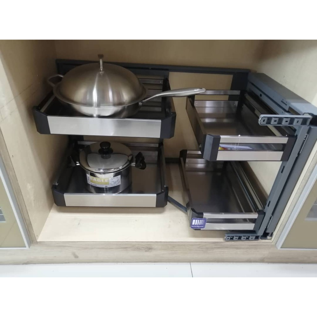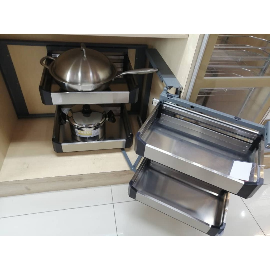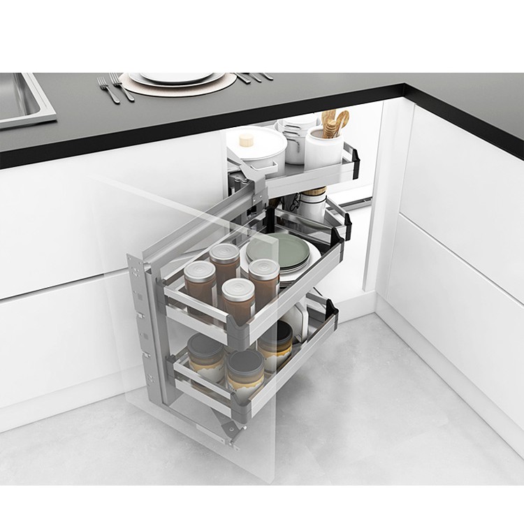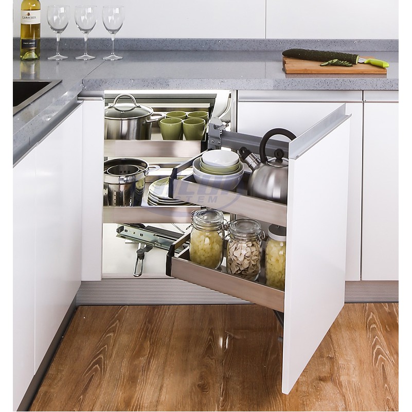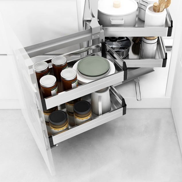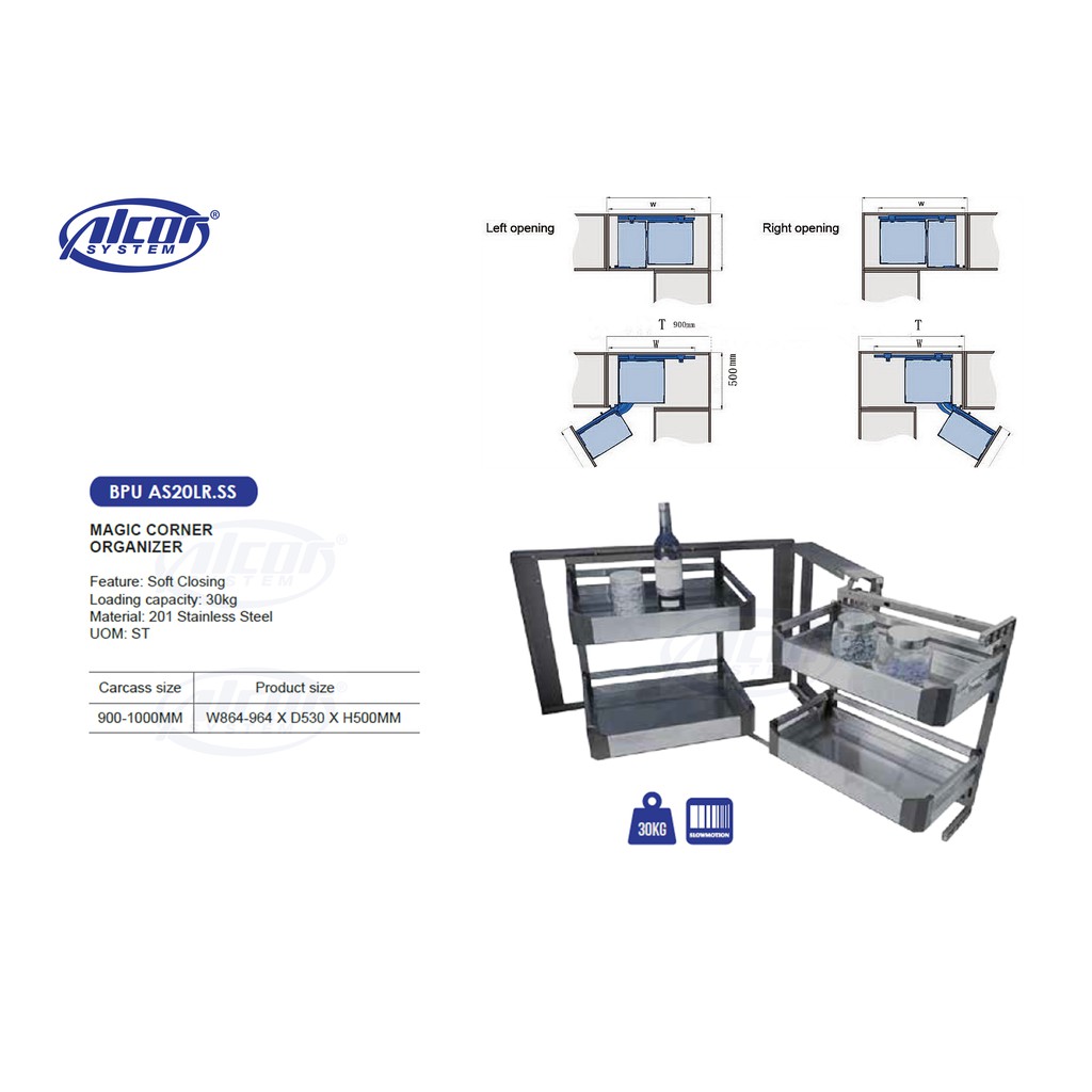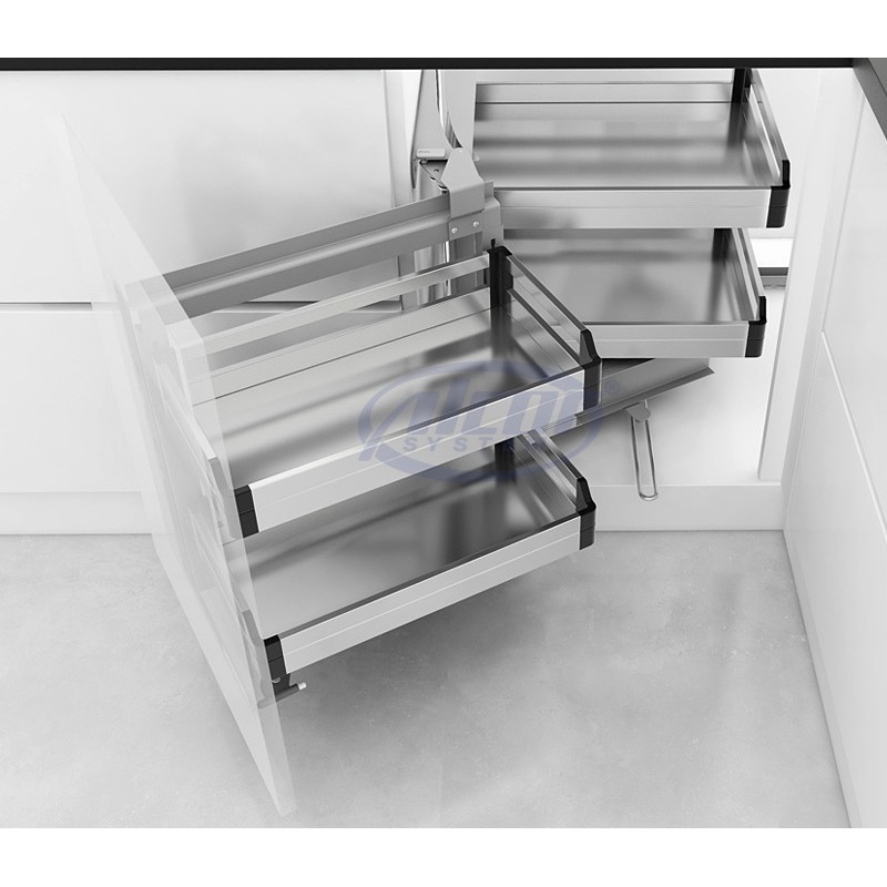 Alcor System AS20LR Magic Corner Organizer / Magic Corner Pull Out Basket / Stainless Steel - Soft Closing