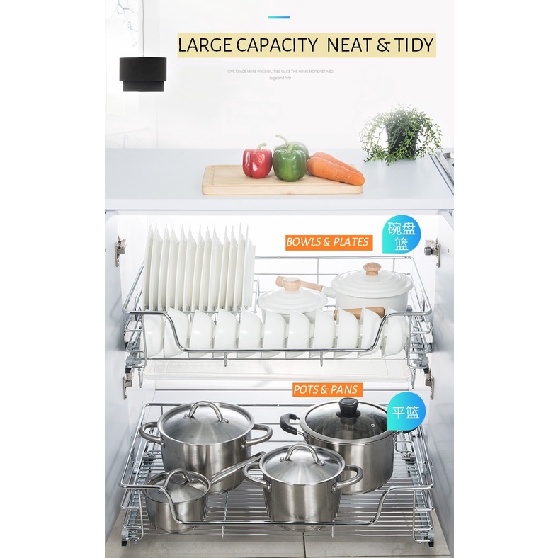 Alcor System W7 Kitchen Cabinet Wire Pull Out Basket / Kitchen Drawer / Stainless Steel