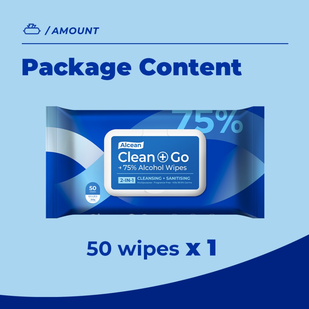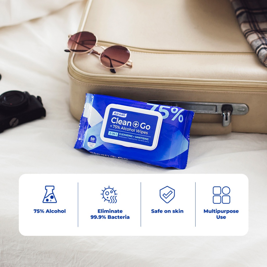Alcean 75% Classic Alcohol Wipes - 50 Wipes (3 Packs / 9 Packs)