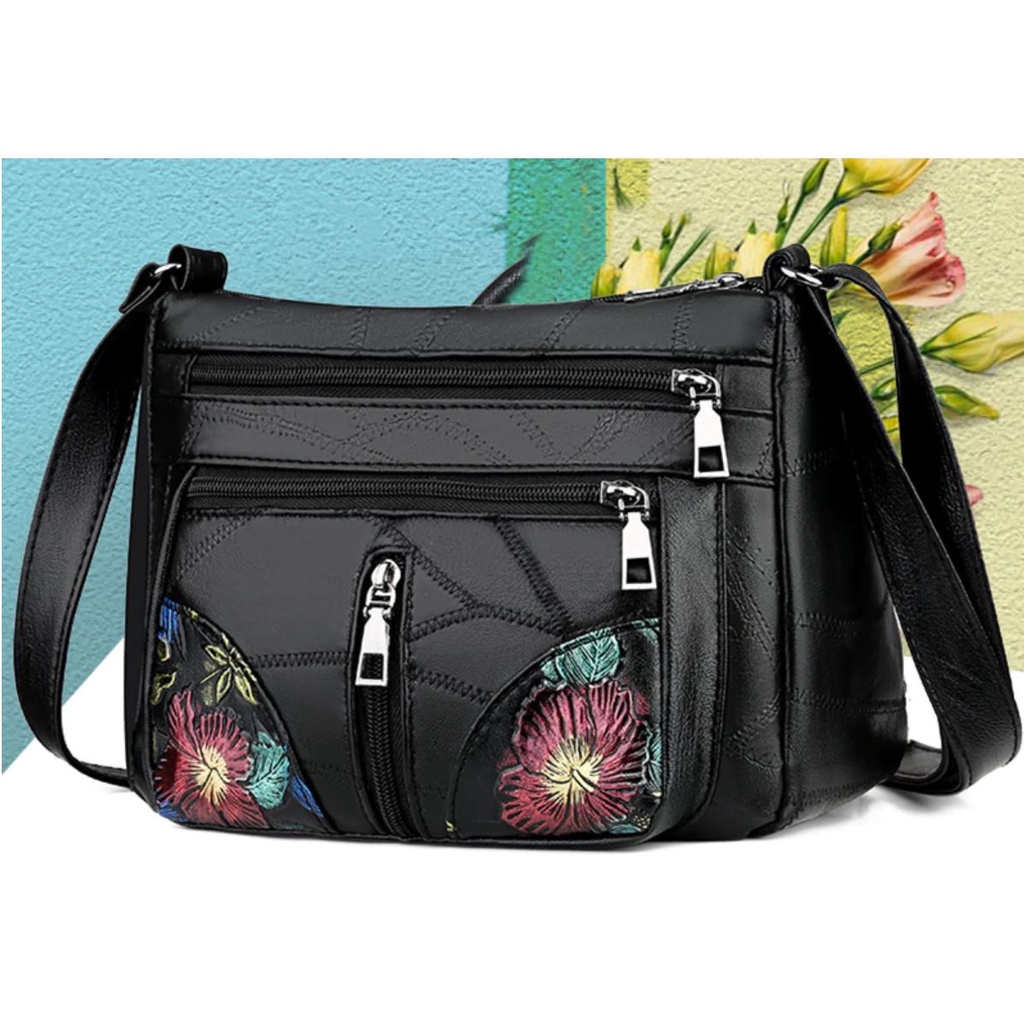 Aldawaar Beg Tangan Wanita Bahu Jinjing Silang ( Black Elegant Travel Sling Shoulder Women Handbag Tote Bag ) 1W4
