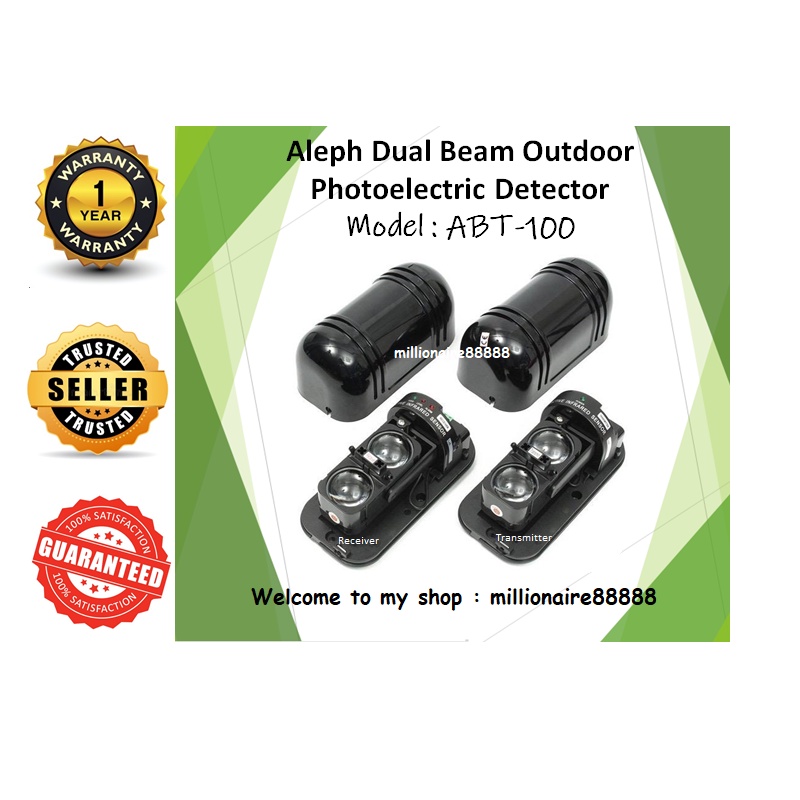 Aleph ABT-100 Dual Beam Detector Outdoor 2 Beams Infrared Detector Photobeam 100m (1Pair) Receiver and Transmitter