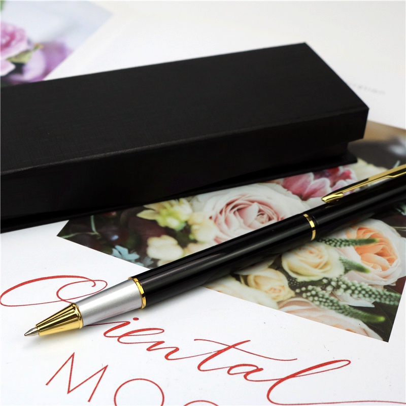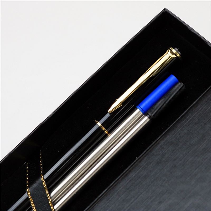 All metal signature pen Free engraved custom gold text roller pen 2 extra refills in black and blue with gift box packaging