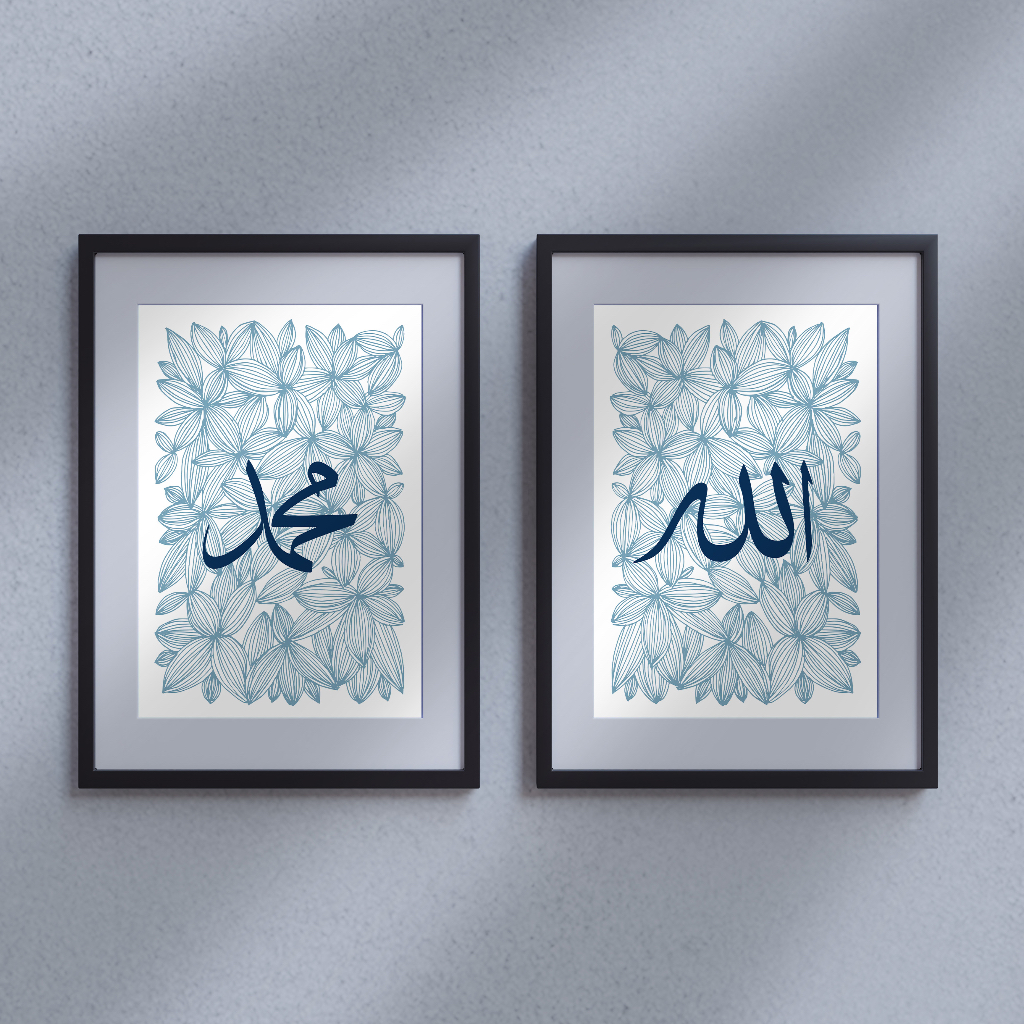 Allah Muhammad Calligraphy Poster, Hiasan Dinding, Wall Art