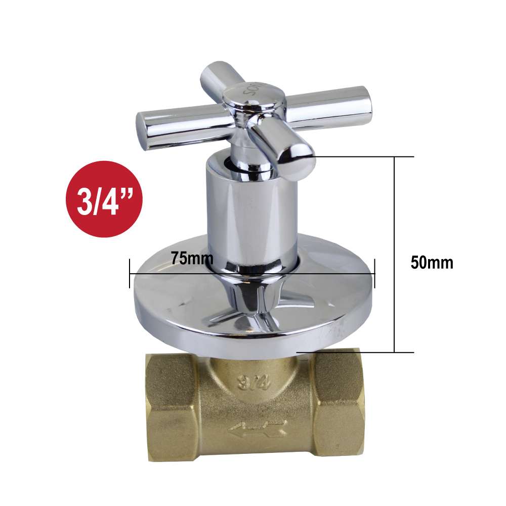 Alloy Cross Handle & Brass Body Concealed Stopcock 1/2 Inch / 3/4 Inch Anti Rust Wall Mounting Handle Shower Stopcock