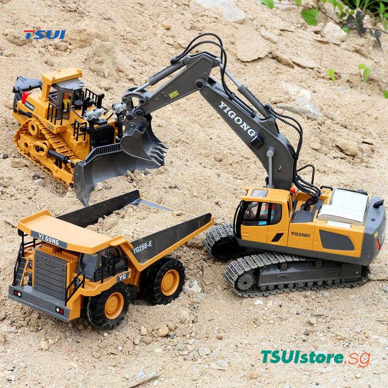 Alloy Metal RC Excavator Dump Truck Bulldozer 6/9/11 Channels Remote Control Construction Engineering Vehicles Metal Shovel Car