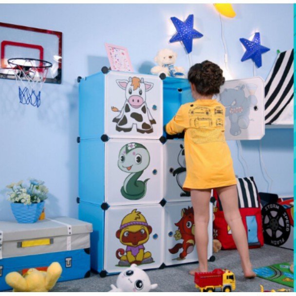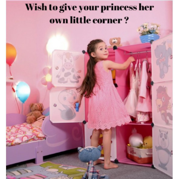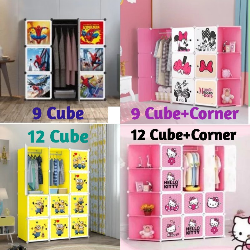 Almari Baju Karton DIY Children Cartoon Cabinet Wardrobe DIY Foldable Rack Cupboard Storage Cube Storage Almari Karton