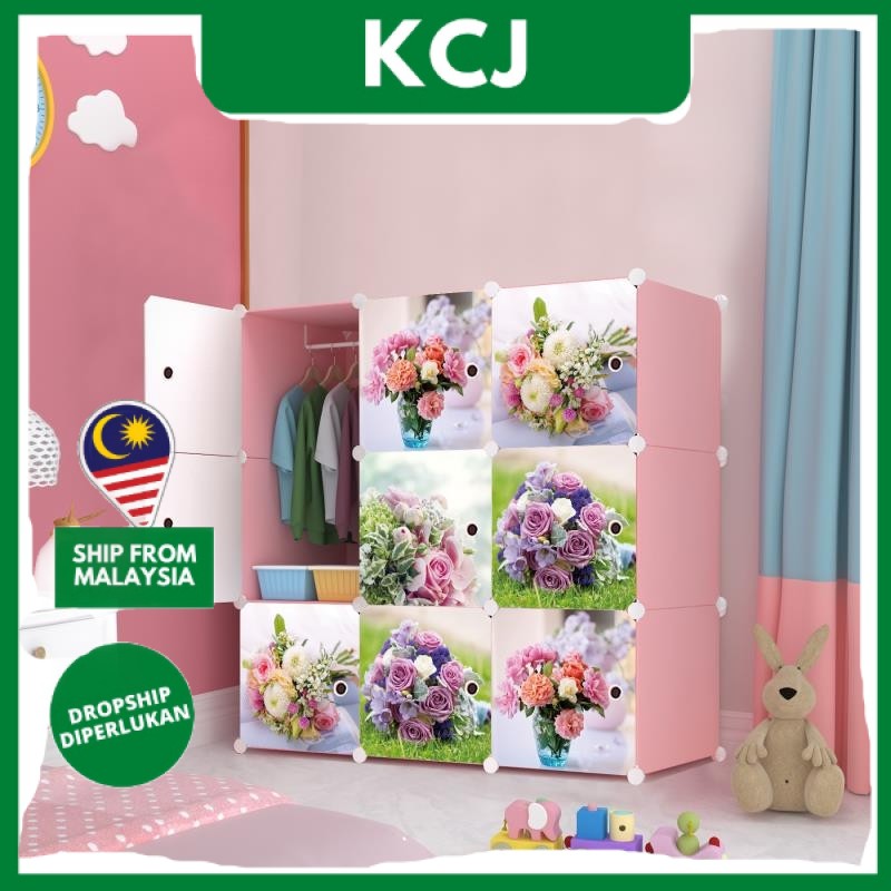 Almari Karton DIY Children Cartoon Cabinet Wardrobe Foldable Rack Cupboard Cabinet Cube Storage Dropship