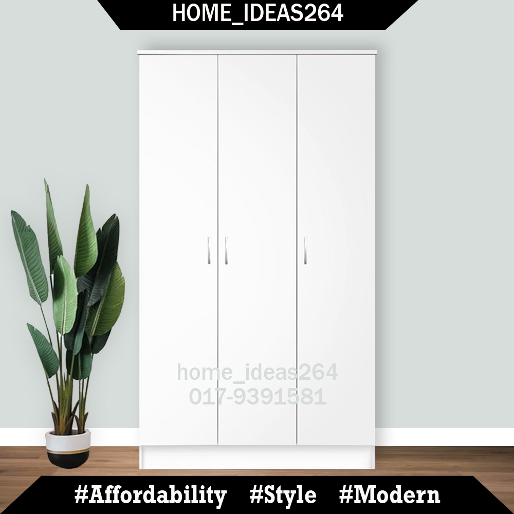 Almari Modern Scandinavian Wardrobe (3 Doors) With Large Hanging Space almari ala ikea almari murah
