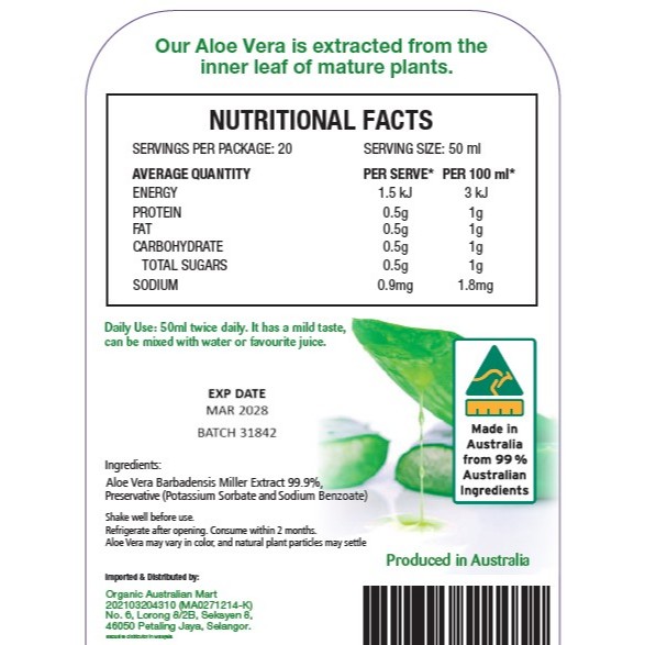 Aloe Vera Juice from Australia 99.9% (1 Litre Inner Leaf Cold Pressed) Ready Stock & Fast Delivery [EXPIRY: OCT 2028]