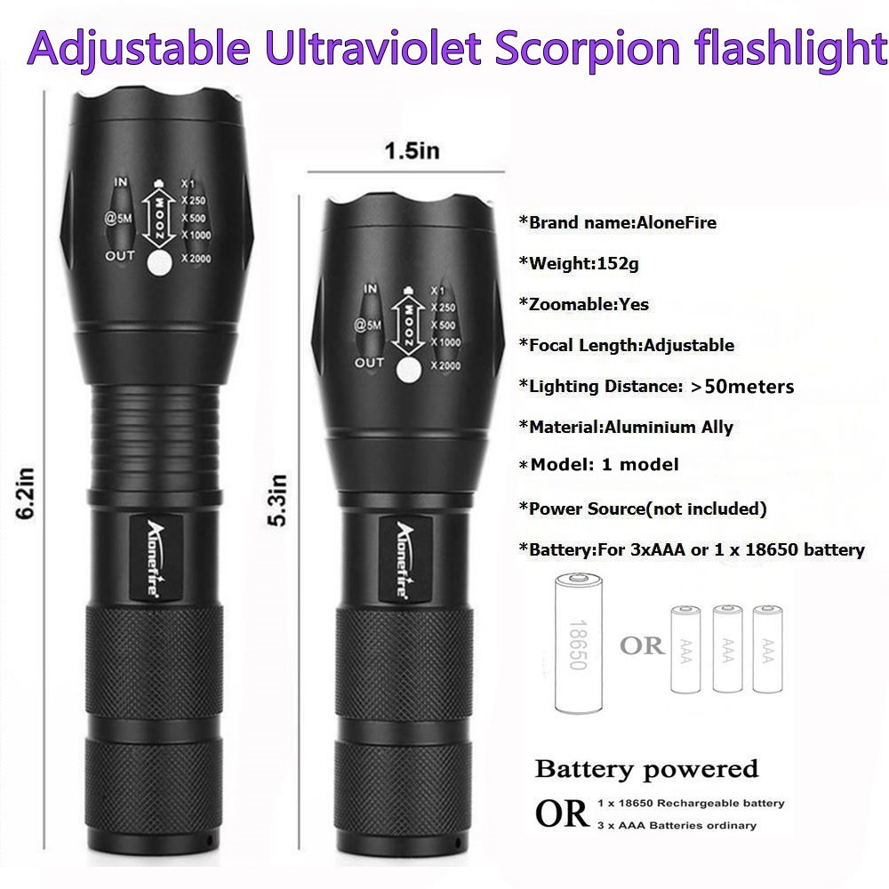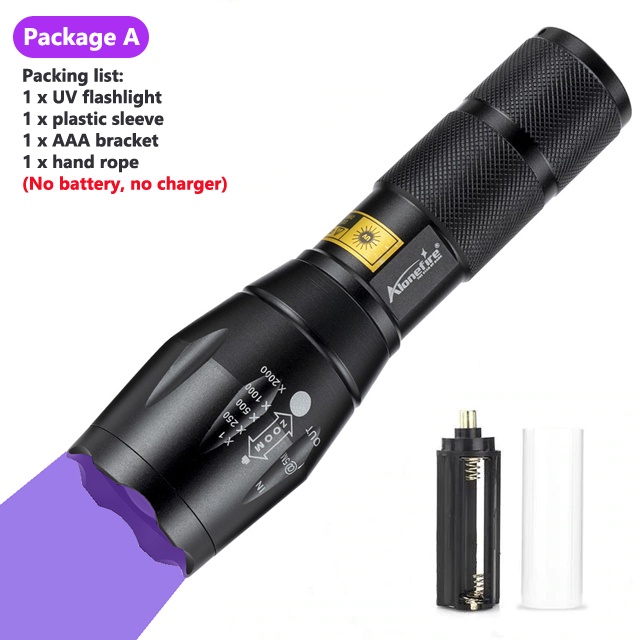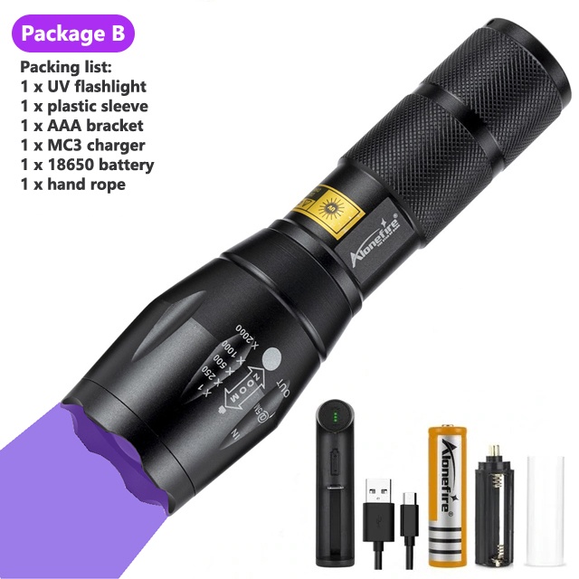 Alonefire G700 LED Zoom UV Flashlight 395nm Curing Travel Safety OreId Detection Lamp 18650 Battery Torch