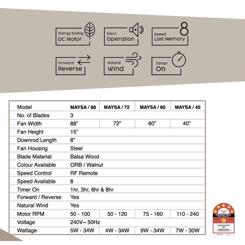 Alpha ALKOVA MAYSA Ceiling Fan (DC Motor) 88"