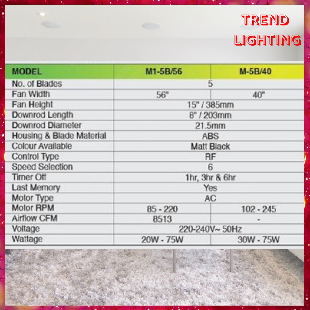 Alpha Cosa M1 Ceiling Fan (40Inch / 56Inch) 6-Speed Remote Control Cosa Series Ceiling Fan M1-5B-56" M1-5B-40"