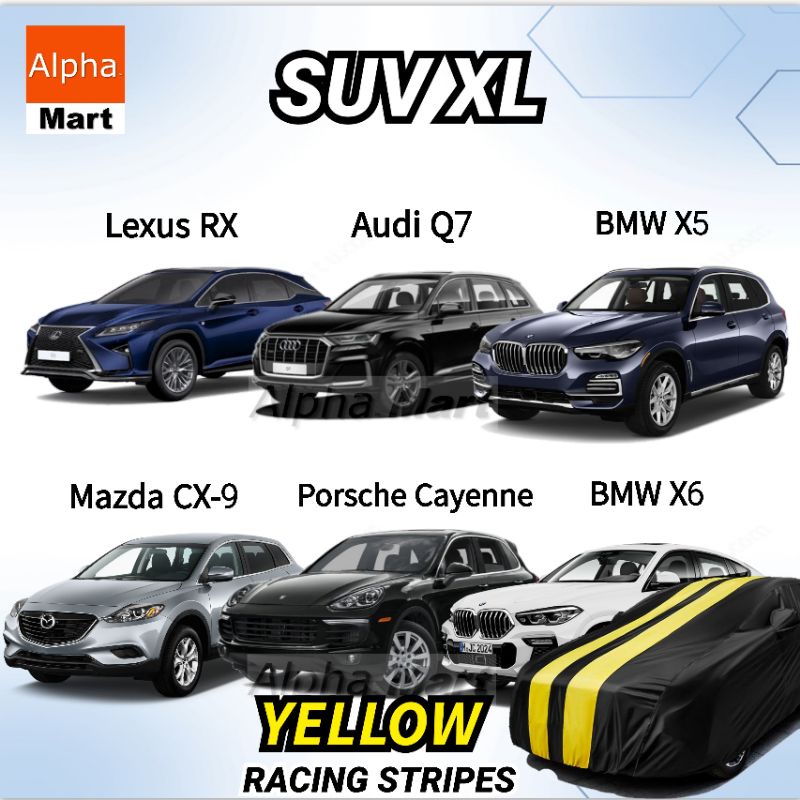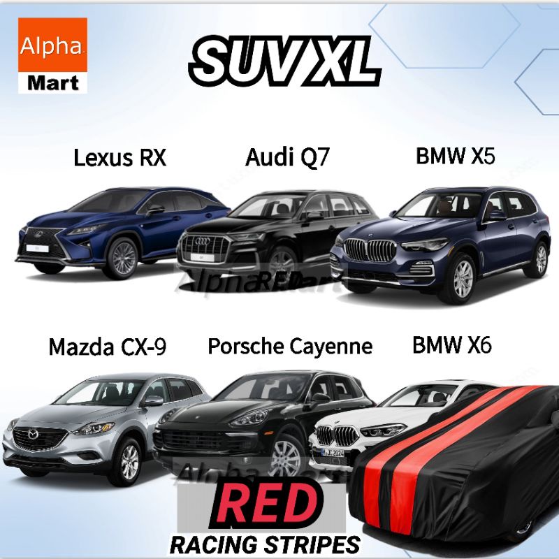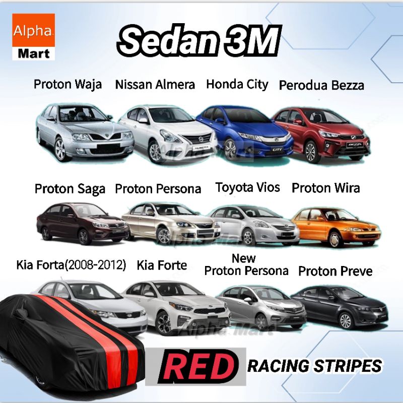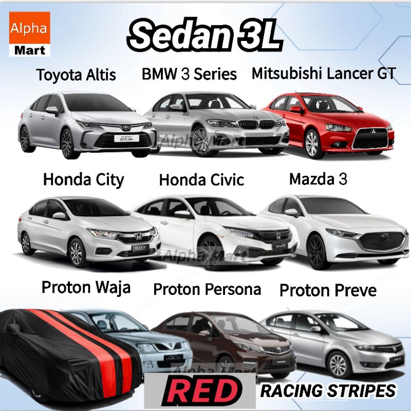 Alpha PREMIUM Racing Stripes Car Cover 3 layers Thick Waterproof Outdoor Selimut Kereta Tebal Cotton Heat resistant Car