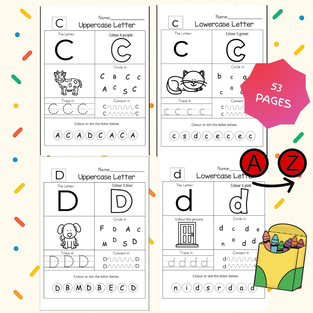 Alphabet A-Z Worksheet | Lembaran Kerja Belajar Huruf Besar & Kecil | Aktiviti Mewarna & Tracing | PDF Digital Print