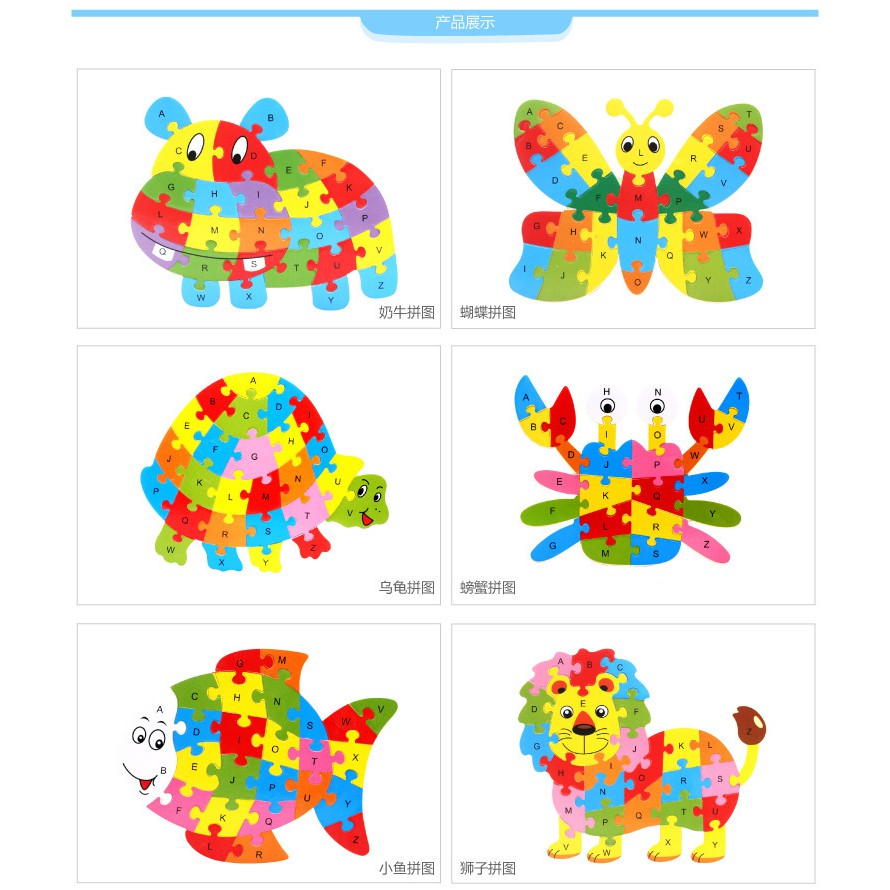 Alphabet Animal Puzzle kids Wooden Toy Puzzle Building Blocks Puzzle