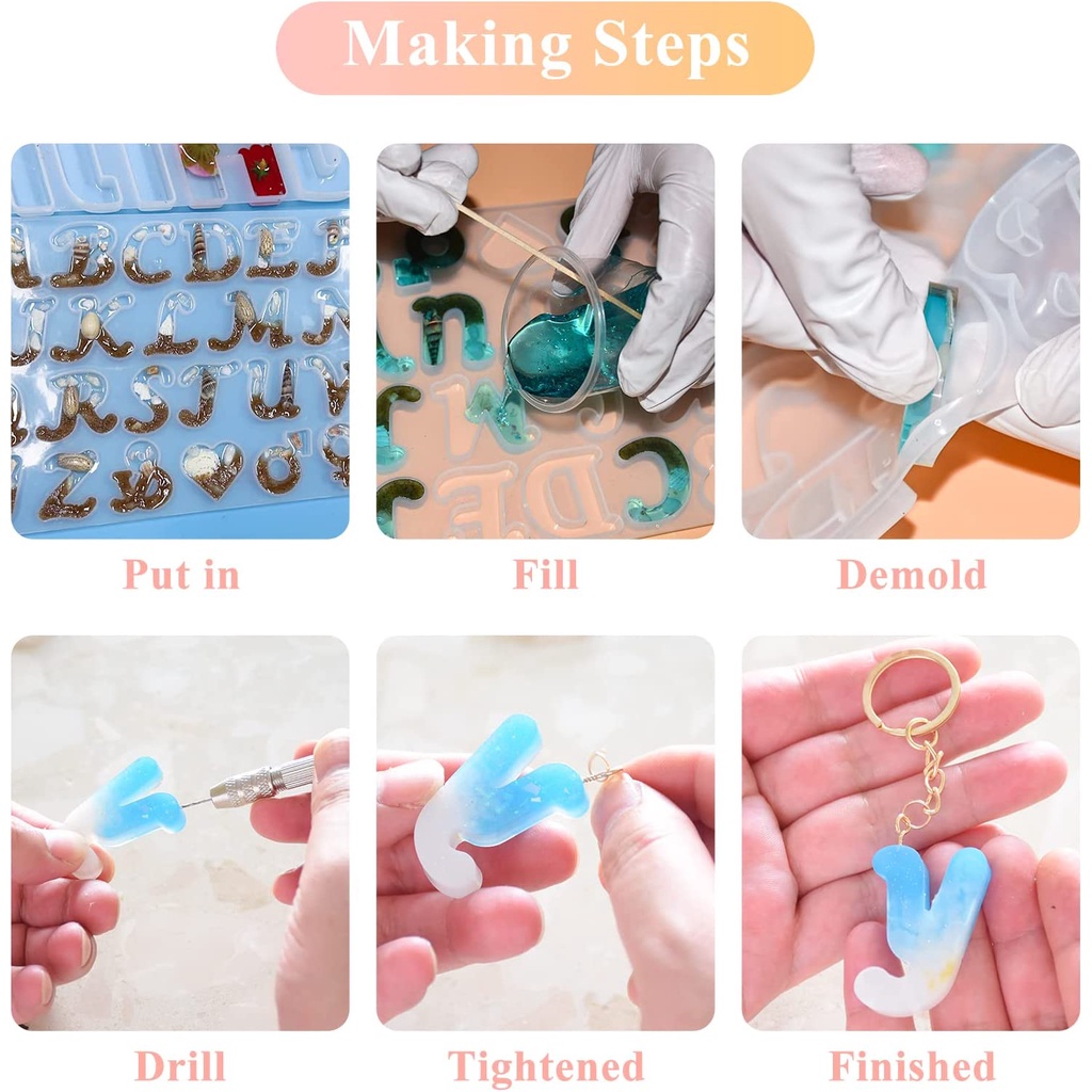 Alphabet Keychain Resin Molds , Letter Silicone Molds for DIY Keychain, Necklace Jewelry Pendant, Keychain Making