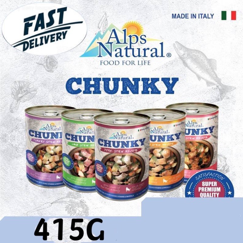 Alps Natural Chunky Dog Can Food 415g - ( Alps Chunks , Alps Salmon , Alps Pork , Alps Lamb . Turkey . Beef )