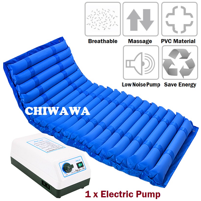 Alternating Pressure Inflatable Bubble Air Mattress Massage Bed + Electric Pump