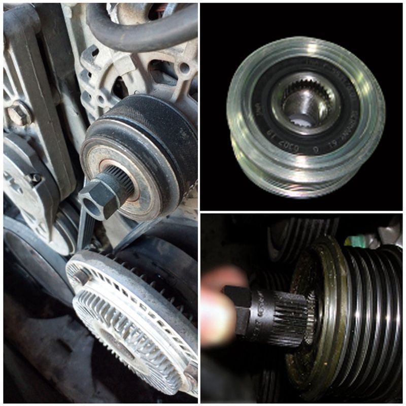 Alternator clutch tool removal free wheel pulley
