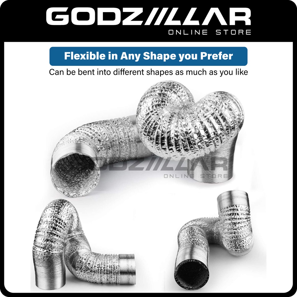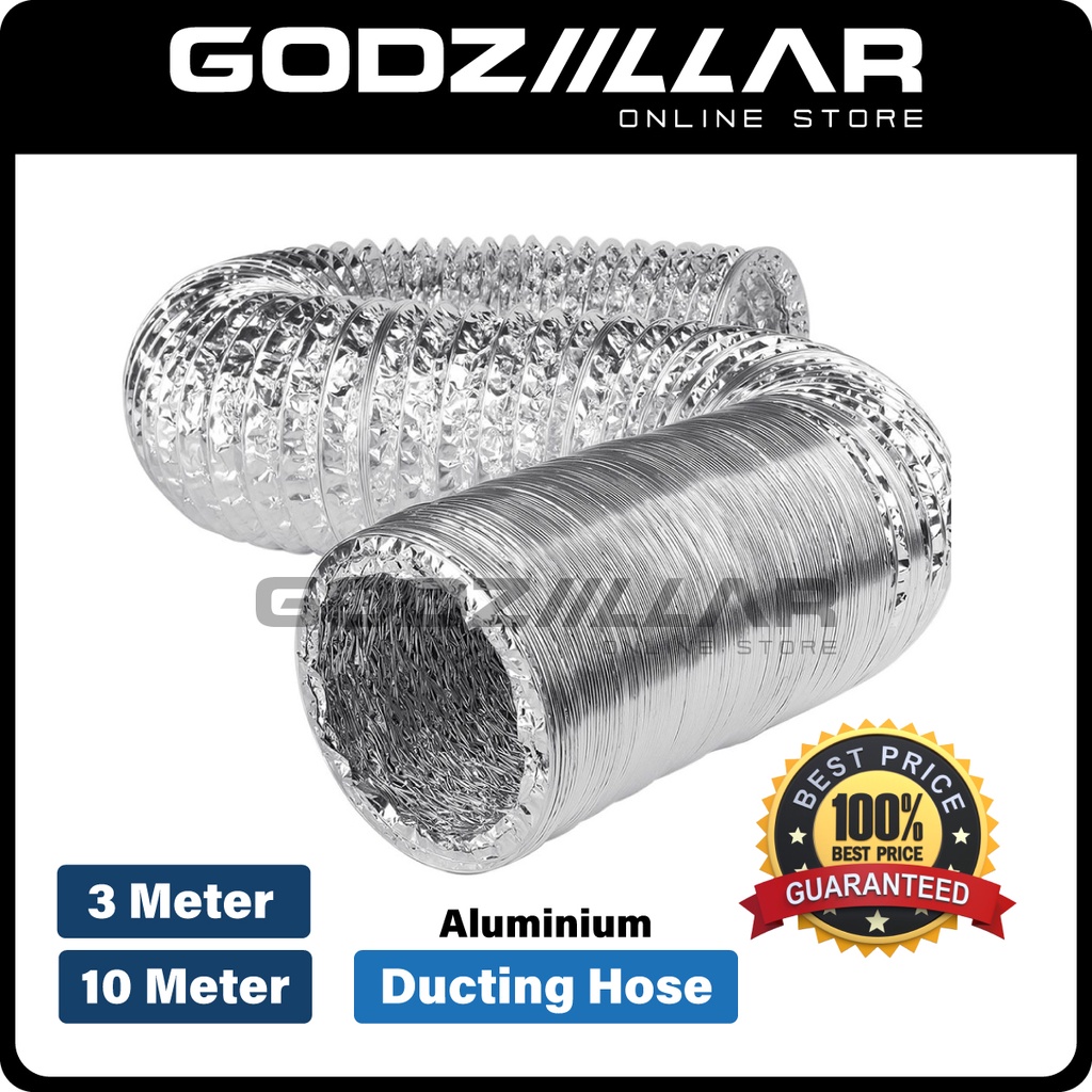 Aluminium Ducting Hose 4"/6" (1.5M/3M/10M) & Stainless Steel Ducting Cap | Flexible PVC Outlet Exhaust Hose