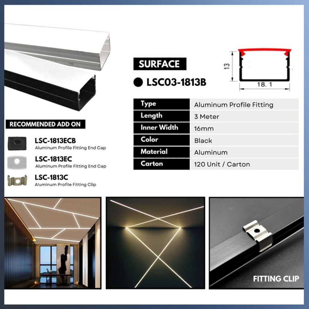Aluminium Profile LED Strip Casing Diffuser Cover Housing 3Meter (Black / Silver)