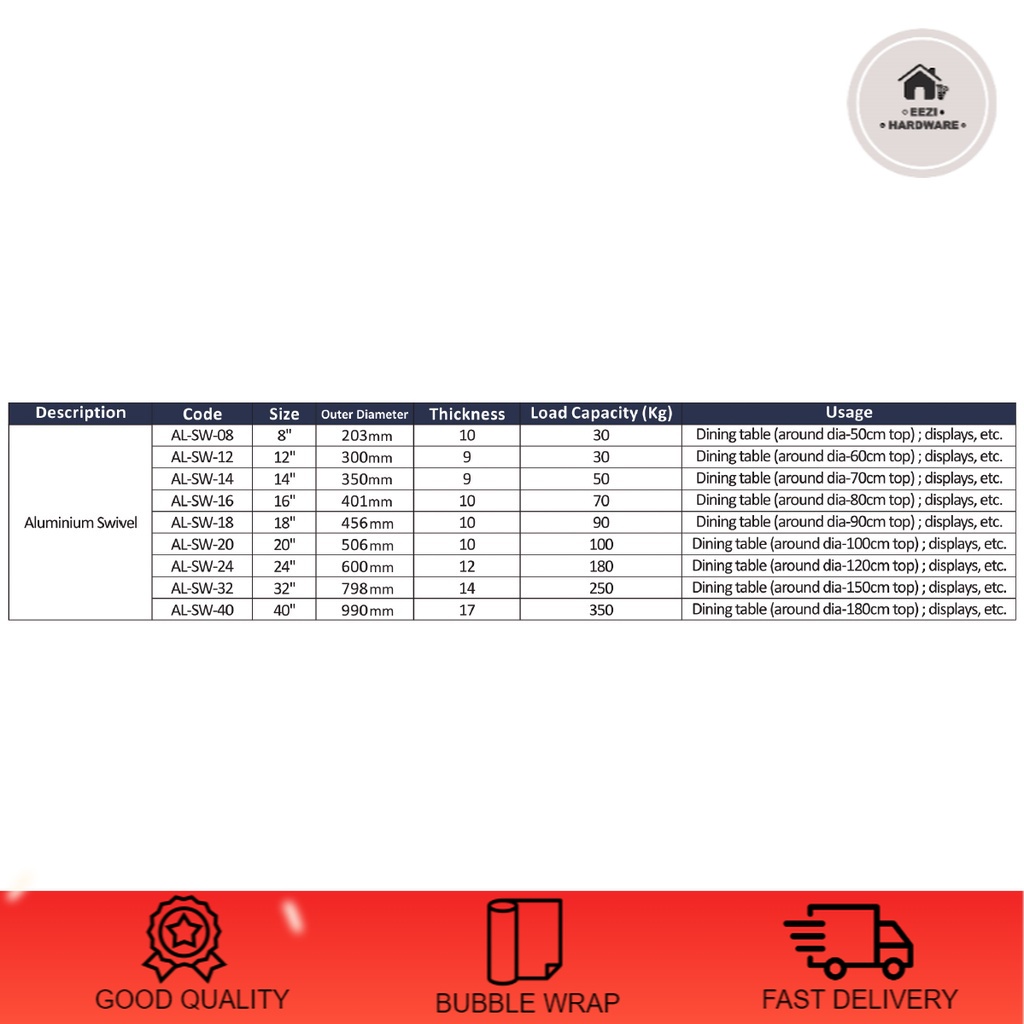 Aluminium Turning Plate Rotate Swivel Aluminium Swivel Dining Table Cover Lazy Susan Meja Makan Alat Bulat Lauk Pusing