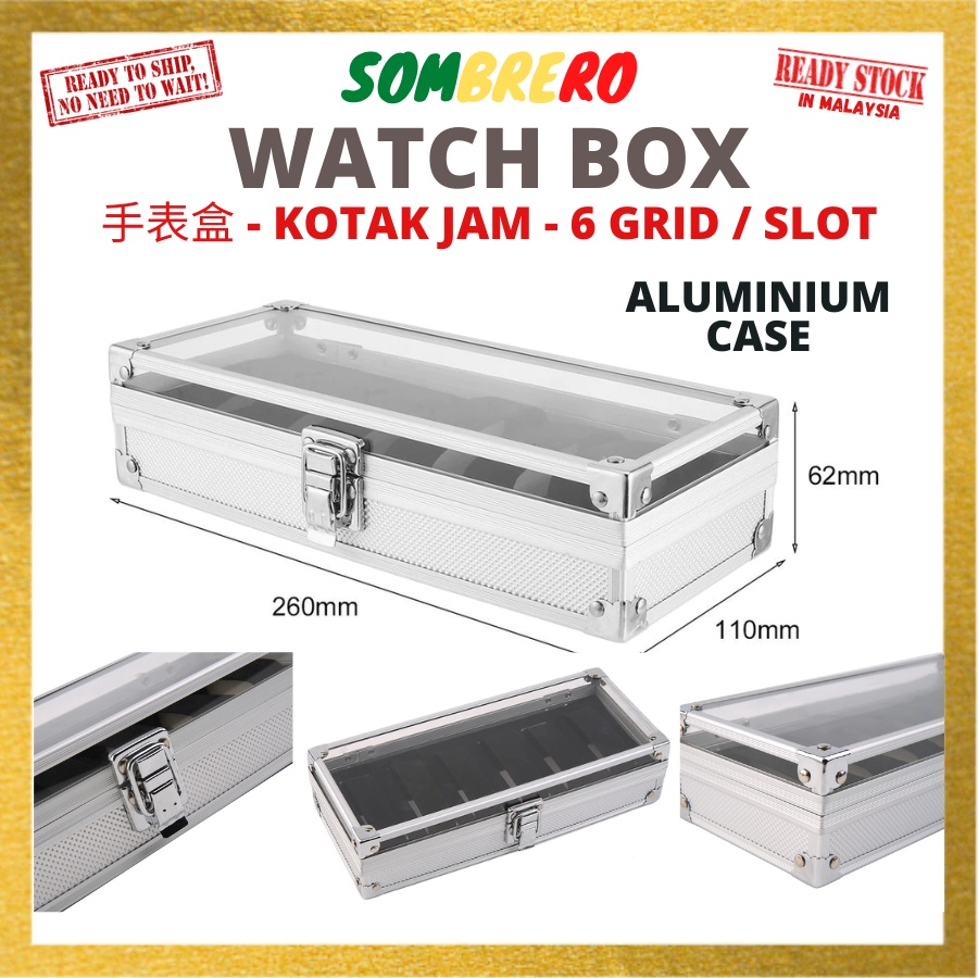 Aluminium Watch Box | Display Case | Kotak Jam | 6 Slot | Grids | Storage | Organizer | Premium Quality | Ready Stock
