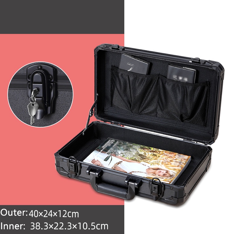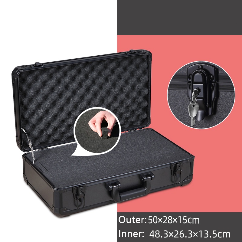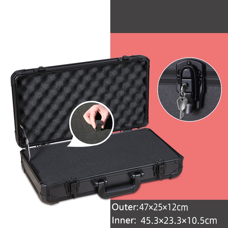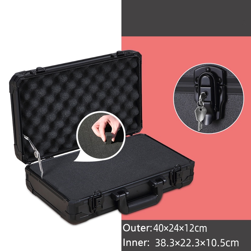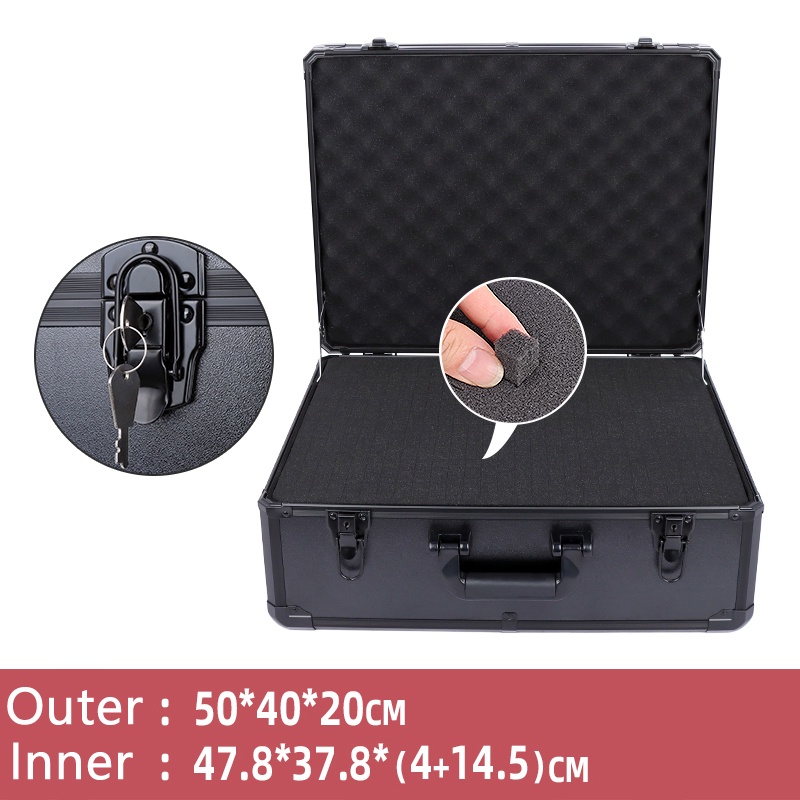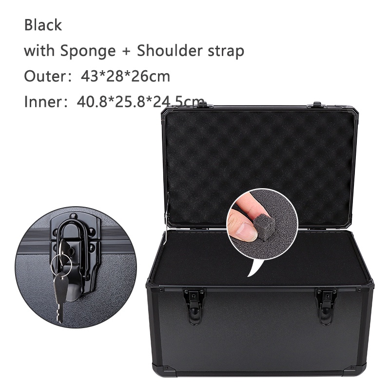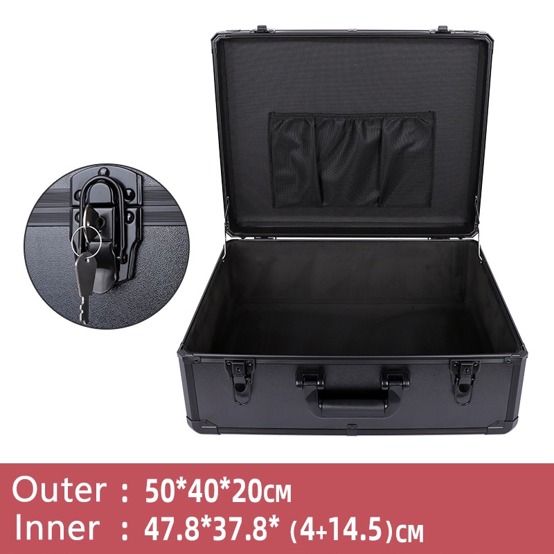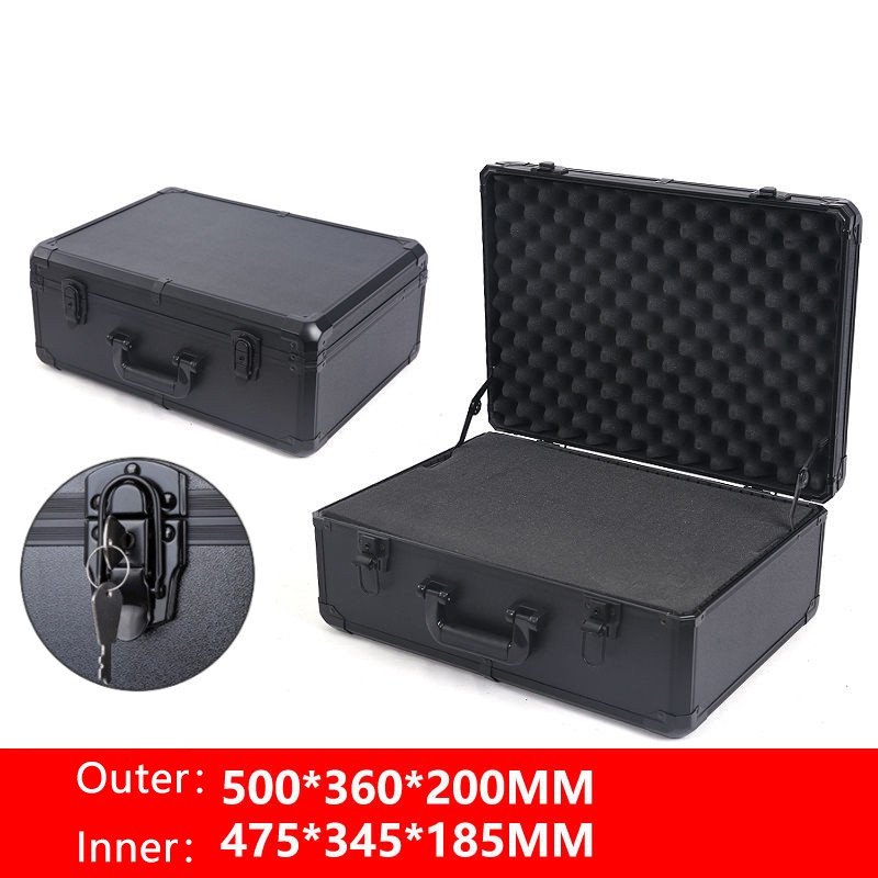 Aluminum Alloy Black Tool Box Safety Equipment Instrument Toolbox Impact Resistant Case Lock Storage