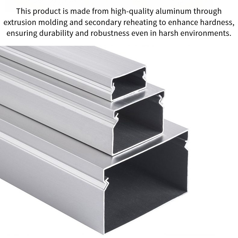 Aluminum Alloy Cable Trunking, Surface-Mounted Square Wire Duct, Metal Cable Tray, Invisible Decorative Wire Channel for Home and Office Wiring, Fireproof and Waterproof