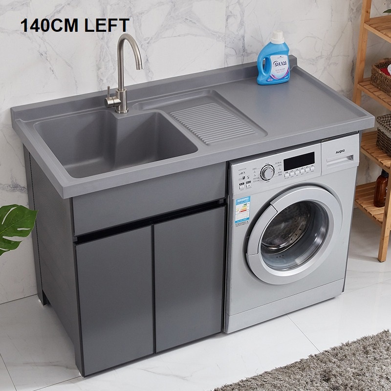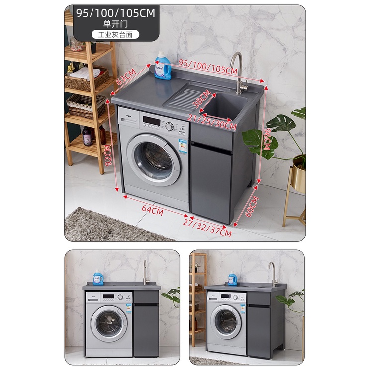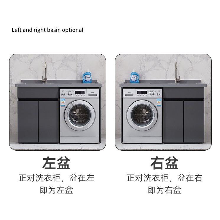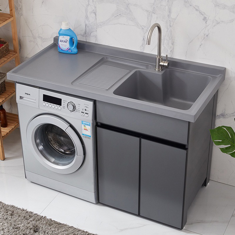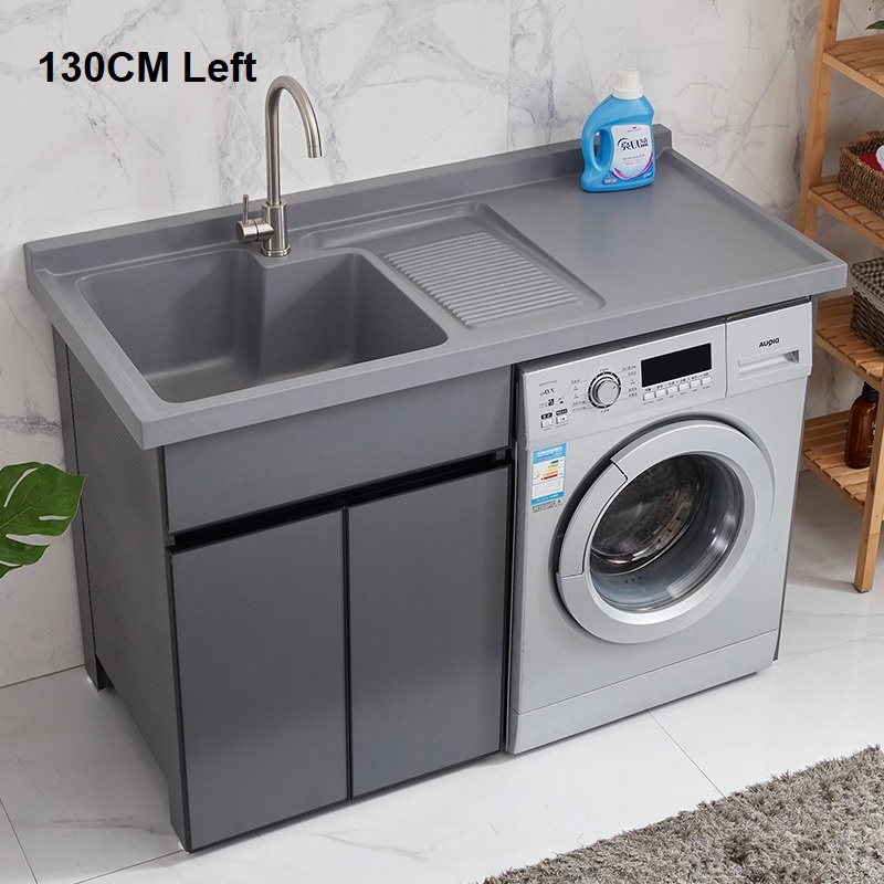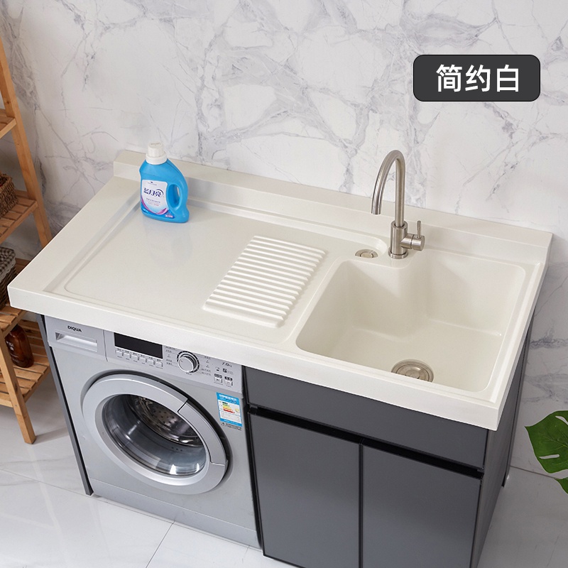 Aluminum Balcony Washing Machine Cabinet With Basin Quartz Waterproof Laundry Cabinet Custom Cabinet Front Loader