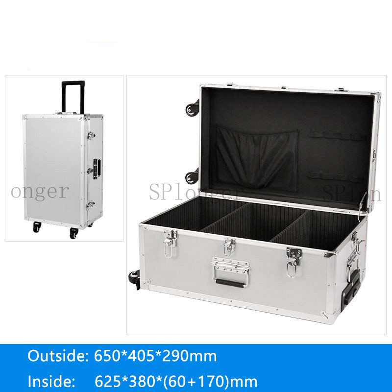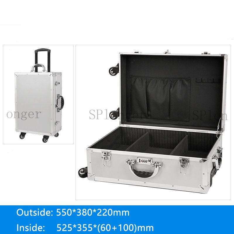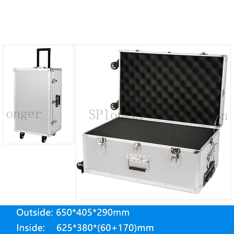 Aluminum Trolley Toolbox Suitcase Luggage Shockproof Hardware Equipment Instrument Protective Lock