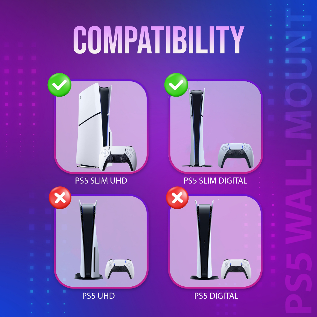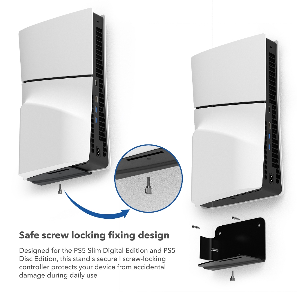 Aluminum Wall Mount for PS5 Slim Digital Edition and Disc Edition Heat Dissipation Behind TV/Wall Mount Bracket for Playstation 5-Slim Space Saving PS5 Slim Shelf Mount