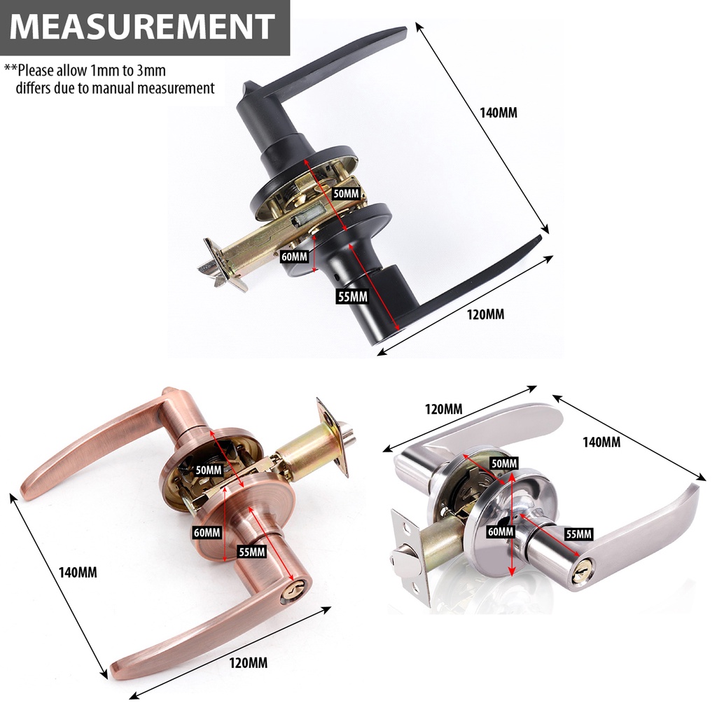 TUBULAR LEVER ENTRANCE DOOR LOCK KNOB SET 2841MB/2841MG/ 3832MB/3832AC BALBIN BRONZE MORTISE/ 8600SS/8600AC/8600MB BLACK