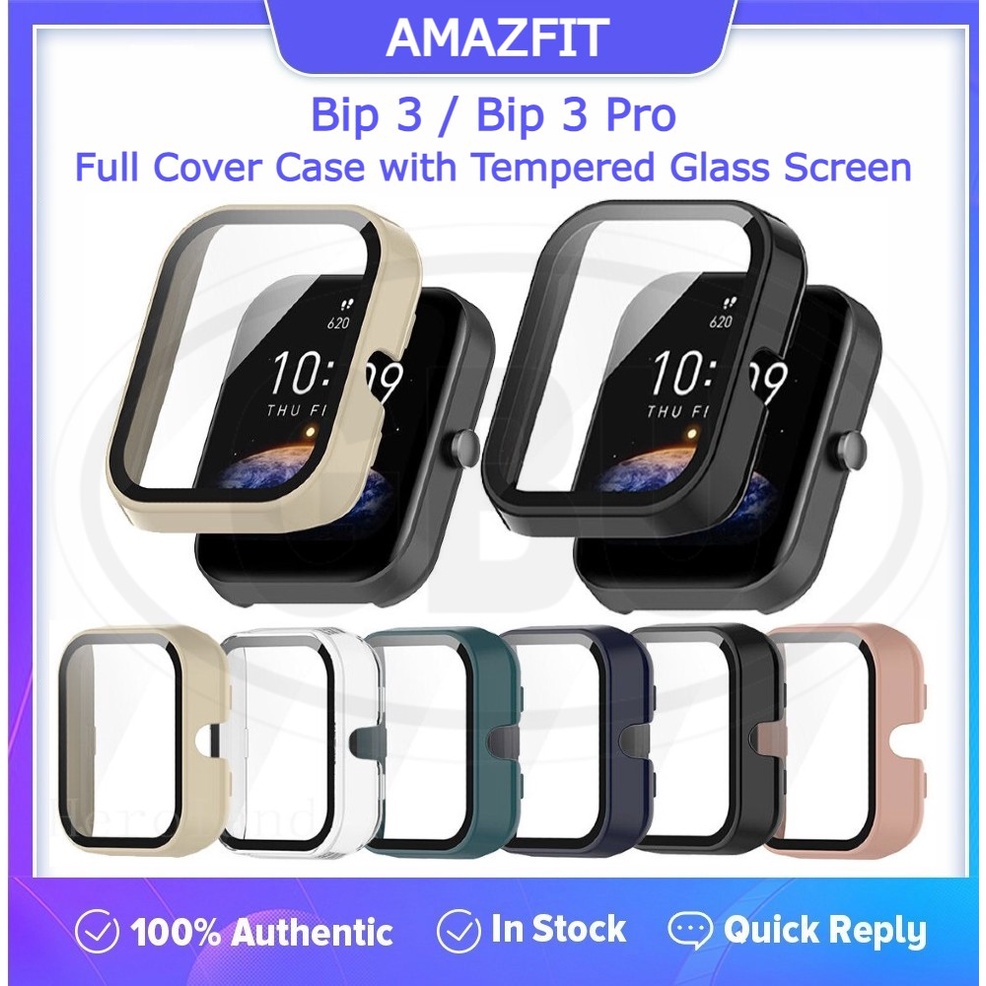 Amazfit Bip 3 / Bip 3 Pro Sarung Full Built‑in Tempered Glass Cover