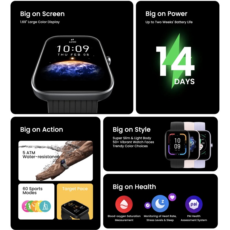 Amazfit Bip 3 Pro A2171 Smart Watch Heart Rate Blood Pressure Monitor iOS Android